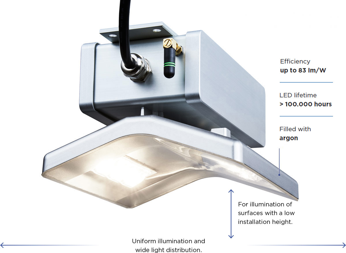 The additional, special filling of the light housing with inert gas (argon) prevents condensation inside, and therefore a longer life of the LEDs can be guaranteed. The SLC core chip is integrated into the “CCG” light. This allows the user to read out the energy data and to dim 0-100%. The wireless data transmission provides the convenience of a simple operation for various application settings and presettings. The “CCG Smart” is also available with optional motion sensors.
