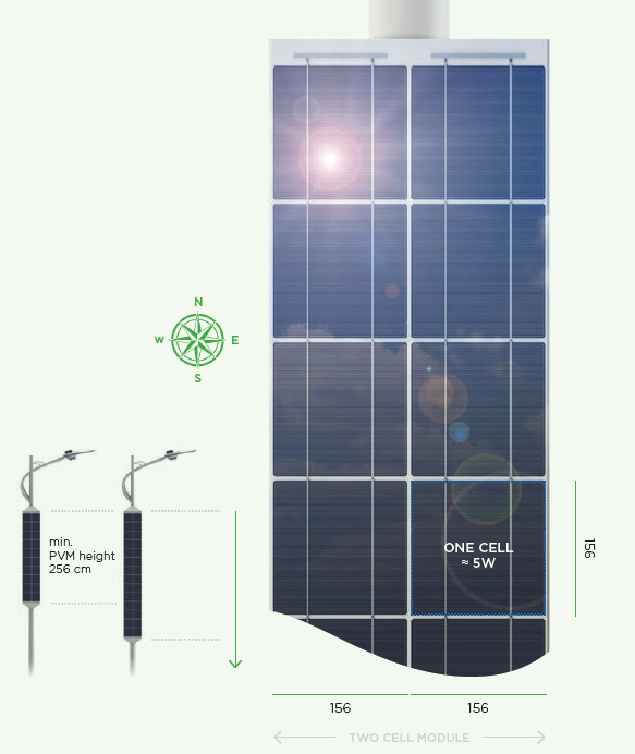 • MODULAR CONCEPT of vertically mounted PV modules installed in a special frame.