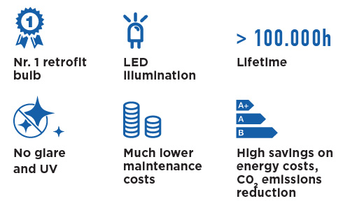The ECCLESIA LUX will keep buildings magnificent, significantly cut energy usage, redvuce costs and at the same time increase the light output. With much longer lifetime in compare to traditional lights, no maintenance will be needed for years.