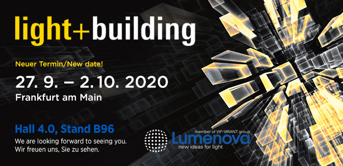 27.09 - 02.10.2020 we will be present on the LIGHT + BUILDING, MESSE FRANKFURT. Hall 4.0, Stand B96