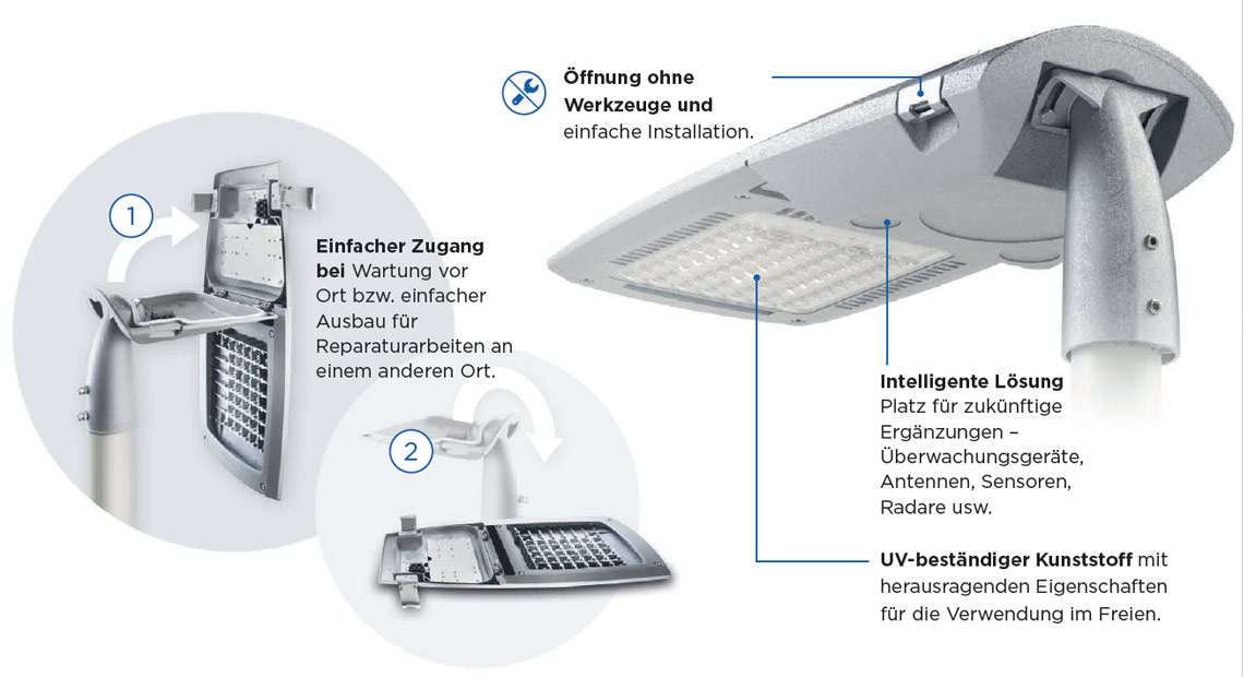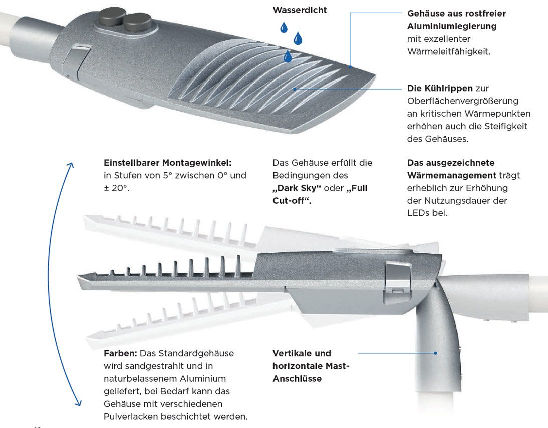 | Anwendung | Öffentliche Außenbeleuchtung, Haupt- und Nebenstraßen, Rad- und Gehwege | Öffentliche Außenbeleuchtung, Haupt- und Nebenstraßen, Rad- und Gehwege | Öffentliche Außenbeleuchtung, Haupt- und Nebenstraßen, Rad- und Gehwege |